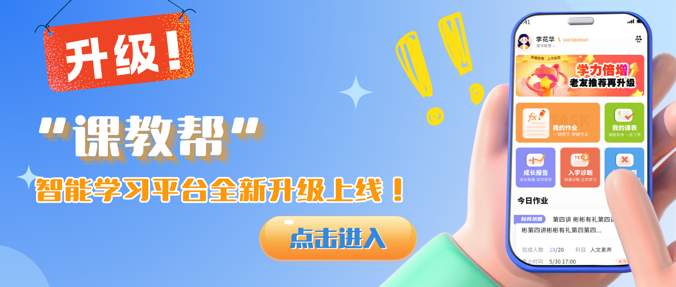 以前我学习一直不咋地,自从用了课教帮,成绩蹭蹭蹭的涨,原本80积分,现在平均分上90,这次期末考试也不用愁了。做有关学习任务,不断增长自信,特别好。